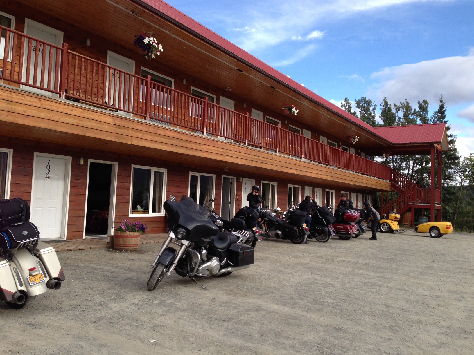 Then the group staying with Dewey headed to town and the rest of us saddled up and headed to the hotel. A few of us, met for dinner at a place called Kathy’s with supposedly the best burgers in the Yukon…again, I don’t eat those so I had a plate of rabbit food. After some laughs and good road conversation we all headed on our way to our rooms etc to rest up before the next big adventure!