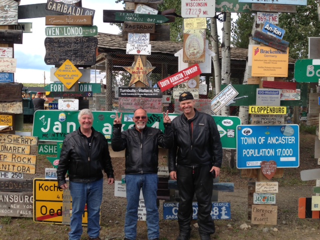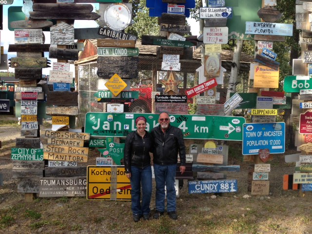 Dewey is one of those riders who has become part of our local family since he joins us every year for the HOG rally and knows most of us on a first name basis. He is a cool dude and offered boarding to a few of the group and a party by the fire for all of us after dinner. Right before Watson Lake we pulled into a silly “tourist trap” store and mingled for a bit.
