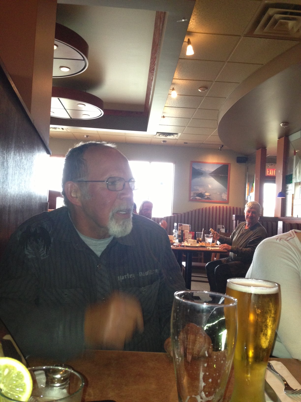 We ate a late lunch at The White Spot, which is also where we ate in 2008 when we rode through. The food was great and we even had some entertainment when Barry recited a Robert Service poem, the cremation of Sam McGee.