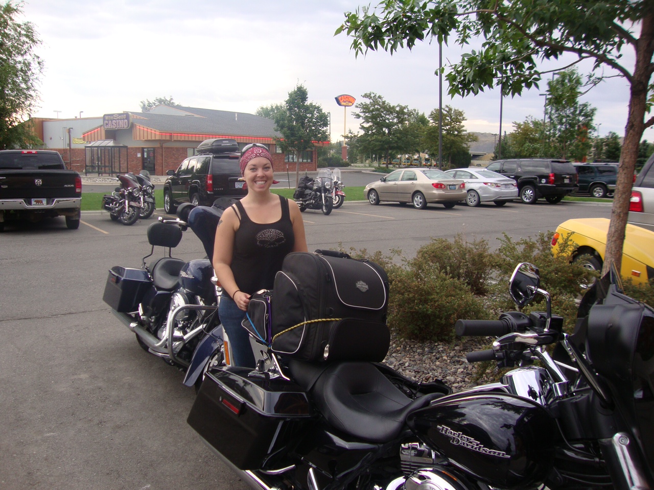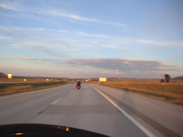 When we finally got to Sheridan, I was shocked to see we still had another 220 miles to go! So, we filled up the bikes and hit I-90. We paced around 80 mph the whole way, with Lorie somehow able to drink water and eat 80mph M&M’s! It was a long haul and most of the road was flat, but we managed to make it to our hotel in Sturgis at 8:05pm.