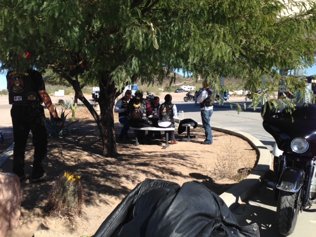 We finally get to the border and most of us make it through no problem. The line to get across was pretty long, you would think it would be the other way around, but it was also a good sign that the rally might have a better attendance this year. With the economy and all the drug violence the Rocky Point Rally had been in major decline the last 4 years or so. This year however seemed to be an uptick in the trend. We fought our way into the line and sat in the heat until it was our turn. We all made it through with no hassle except for Jerry and Carol. They were stopped and asked a few questions etc and we were on our way. It was a little shocking since I haven’t been to Mexico for 6 years or so. It was an instant change in the roads and all of a sudden my rusty Spanish was firing back in my head as I tried to decipher signs. For “speed bumps” they have a couple different types…one is like a half of a volleyball made out of metal with several others around it either in a straight line or multiple rows of them. On a Harley this is a little difficult to ride over, as your tire slips on the sides of them. The other type is unusually placed giant speed humps that literally got Anne high centered on her trike! The roads were rough and unusual, but we wer on our way to Puerto Penasco and the road opened up to an almost highway. With Tom on his Vrod in the lead, we all hoped the “Hassle Free Vehicle” signs meant we were not going to get in trouble for speeding! (We later learned that these signs actually meant that you didn’t have to have a special permit required for your vehicle if you venture deeper into Mexico) We arrive in Rocky Point and eventually after several turns that seem wrong we arrive at a small strip mall type of building where Jerry and Carol pick up their keys.