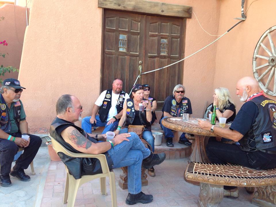 Saturday is the big day for the Rocky Point Rally. There were parties all over, specifically at the Malecon and later on Cali 13 as well as a band at the hotel Playa Bonita. We had plenty of options to keep us busy for the day. The whole group met for breakfast at “Dukes” which is a bar with an area where motorcycles can ride into the building! It is pretty cool and on Friday night when we drove by I saw a few bikes in there doing burnouts. They had a great deal for the rally, a bloody mary or screw driver and an omelet and potatoes for only $8. So we all ate breakfast and planned our day. Mark and Jan still needed to register for the rally so we all headed out to the gas station that housed registration on the way into town. When we got there we were told registration had moved down to the Malecon. So, we all headed that way. It was a hot day and there were a lot of people mingling on the Malecon. We hung out for a while shopping and wandering around. Eventually we all got pretty tired of waiting for the registration crew to show up so we headed to the American Legion Post so Barry could register for their poker run. Unfortunately when we showed up to the Legion we were informed no one had registered for the run, so they cancelled it. We hung out for awhile out in their back lot. While I was sitting soaking up some sun a couple of us noticed an interesting scent floating on the air. With that, I started looking around and spied some smoke billowing from the other side of the wall surrounding their back lot. It was the unmistakable smell of weed, so I poked my head over the wall to squelch my curiosity. I got a glare from an old vet who was enjoying his toke, so I giggled and went back to my sun bathing. I guess everything is ok in Mexico.