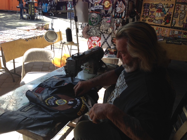We got to the main section of the biker party, that was this really cool outdoor bar with a bunch of vendors all set up around it.