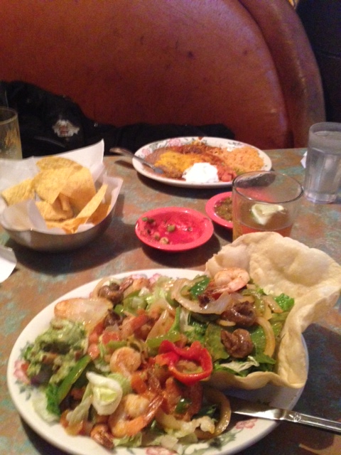 With out late start and not having much options for dinner (actually no options) and breakfast (gross hotel food) I was starving by noon. We stopped in Moscow, ID to grab some food. I found an area that looked like Main Street. It was a college town and although I saw a restaurant right up my alley (fresh veggies and good ingredients) Barry opted for the Casa del (Something) Mexican restaurant. The chips and salsa was ok…but the fajita salad I received was terrifying. It was enormous and not very yummy. I ate a few bites and already felt my stomach disagreeing so I stopped.