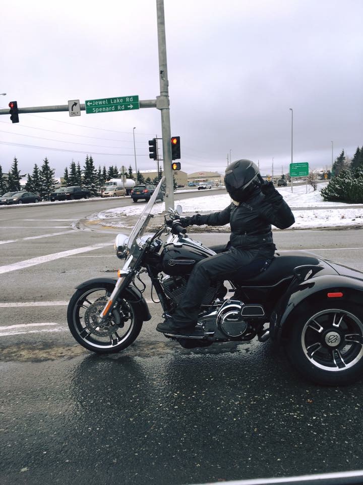 Trike riding in Alaska during the winter is not for the fashion conscious. You look like the “Michelin Man” with all your layers to stay warm, but it is probably the one of the best adventures I have had with my Harley lifestyle.