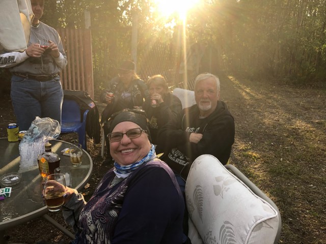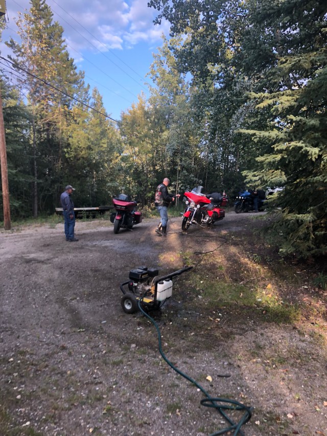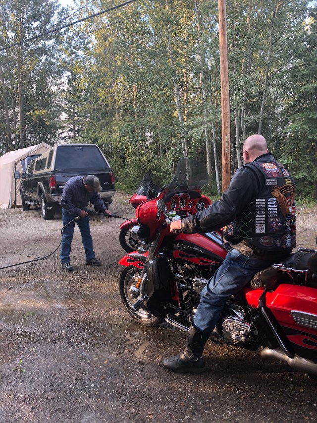 Sarah ran to the store after dinner and picked me up some ginger and got herself a new pair of shades. While I was sitting here writing the blog Barry brought me a milk jug with some whisky in the bottom of it. As long as it isn’t mixed with milk, I think I am going to make a ginger and whisky concoction to kill off this stomach bug once and for all! Tomorrow we will be heading to Bell 2 Lodge on the Cassiar. I am excited for this part of the ride since I have never been on the Cassiar.