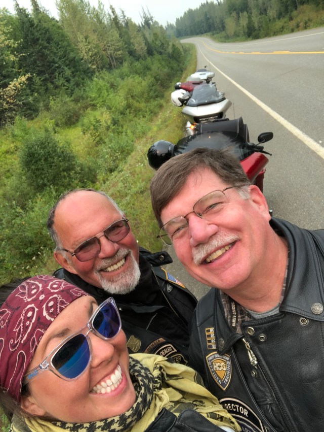 While we were at the gas station our Mounty stopped behind us at the pump and got out of his car and said “you made it!” He actually was pretty nice, so we chatted for a min and after he took a call in his car I walked over and asked for a selfie with him. He asked that I only include him in the blog if I was going to be nice. I assured him that I appreciated his kindness to stop and the warning and that I would be kind in my blog, so there it is. While we were stopped we all ate some snacks and chilled for a while.