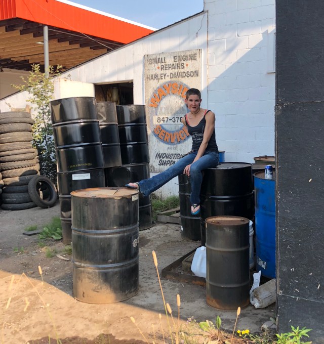 We headed out with the plan to make it until Sarah ran out then we would stop. Eventually, Sarah had dropped off and wasn’t behind me and Barry stopped with her so Jim and I turned around and pulled over with Sarah and Barry. Despite the disappointment of being on the side of the road, we were all ok and together. Sarah immediately started making signs that read “NEED GAS.”