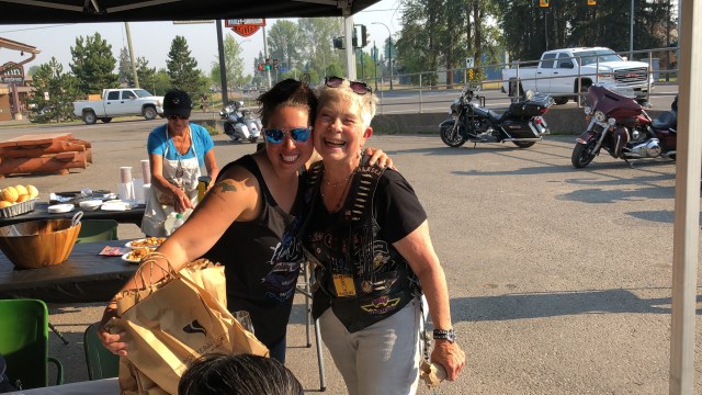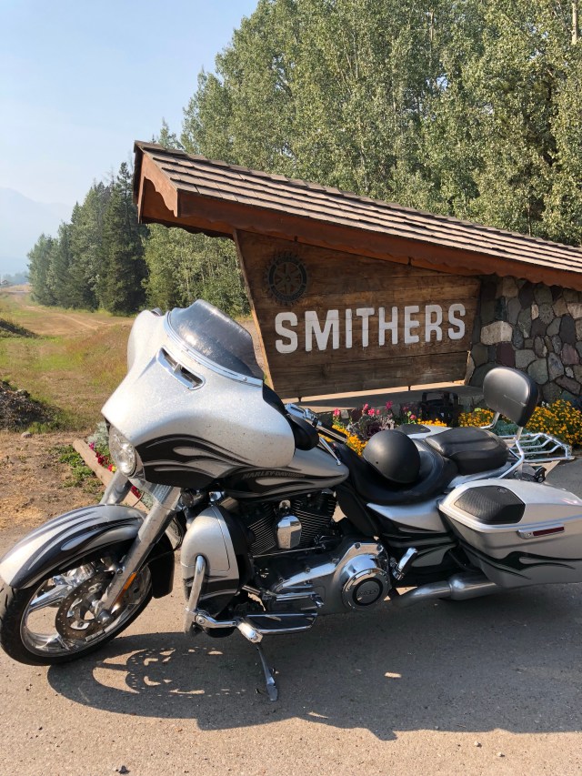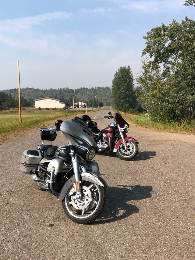 As we headed toward town we lost Sarah first, she is definitely consuming more fuel than that bike should, so we will have to get that looked at…then I went out about 17 miles closer to town than her and Jim went out about 100 yards past me. Sarah had Mike Sweet stop with her and wait, I had Cheryl and Jim had someone, but I am not sure who it was. I could see Jim from where we stopped but I wasn’t about to walk that distance on my knee. Cheryl and I made small talk about our love for riding and her near retirement. While we were sitting there a Mounty pulled up and stopped next to me. He asked if everything was ok and I asked if he had any gas. Unfortunately he did not have any gas, but he was friendly and gave a nice warning that in B.C. if you are going 30km over the speed limit they will impound your bike for 7 days…yep 7 days!! He mentioned that several in the group that was heading to McBride to get us gas were breaking that rule. He assured me he wouldn’t hassle them since they were on a rescue mission but warned they should slow down for the rest of the ride. Nice of him to not bust all of us, and give us a nice warning. I sent a text to Barry and Jim although I figured they wouldn’t get it till I was in town since the signal was so bad out there.