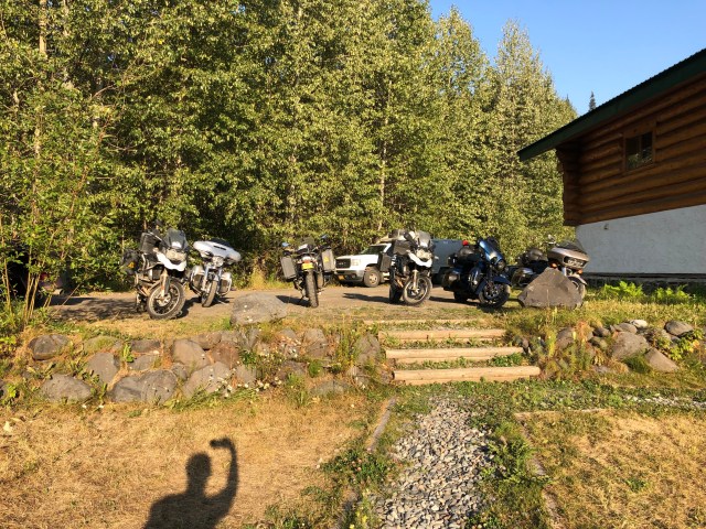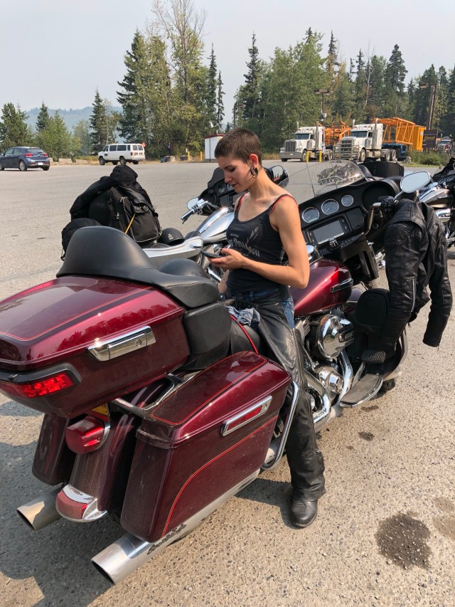 A lot of really nice Canadians stopped to try and help but none of them had gas. One biker, who was riding a 2007 FLHX in Pewter Denim, the exact same bike I made my first trip down the Alcan on, had a large gas can on his bike but it was empty. He was from Edmonton, so he was on his way home. He took the can off and gave it to us so we could get it full enough to get all of us back to town.