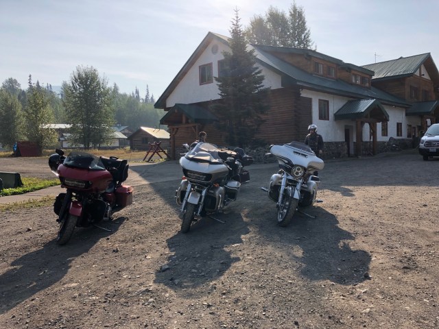 Well we still had a long way to go to McBride which was the next gas stop. Sarah had her 1 gallon can in her saddle bag so we put most of it in hers, she was the lowest and then a little in mine and Jim’s.